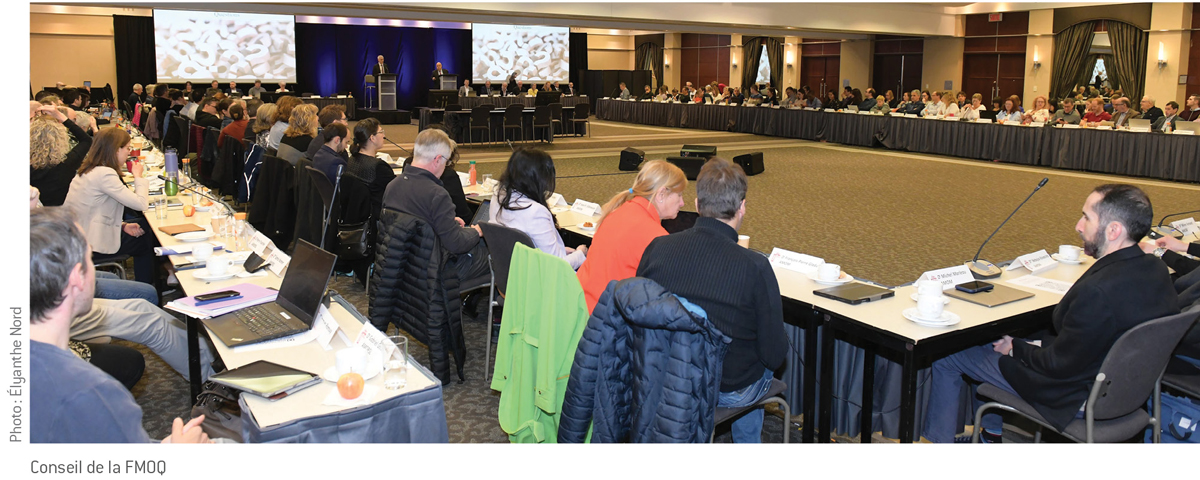 Le projet de loi 15, qui vise à rendre le système de santé et de services sociaux plus efficace, est imposant, mais aussi inquiétant. « C’est un projet de loi pharaonesque qui contient plus de 1180 articles et modifie 38 lois. Cependant, il n’y a pas eu de processus de consultation préalable », a expliqué le Dr Marc-André Amyot, président de la FMOQ, au cours du conseil général du 29 avril dernier.